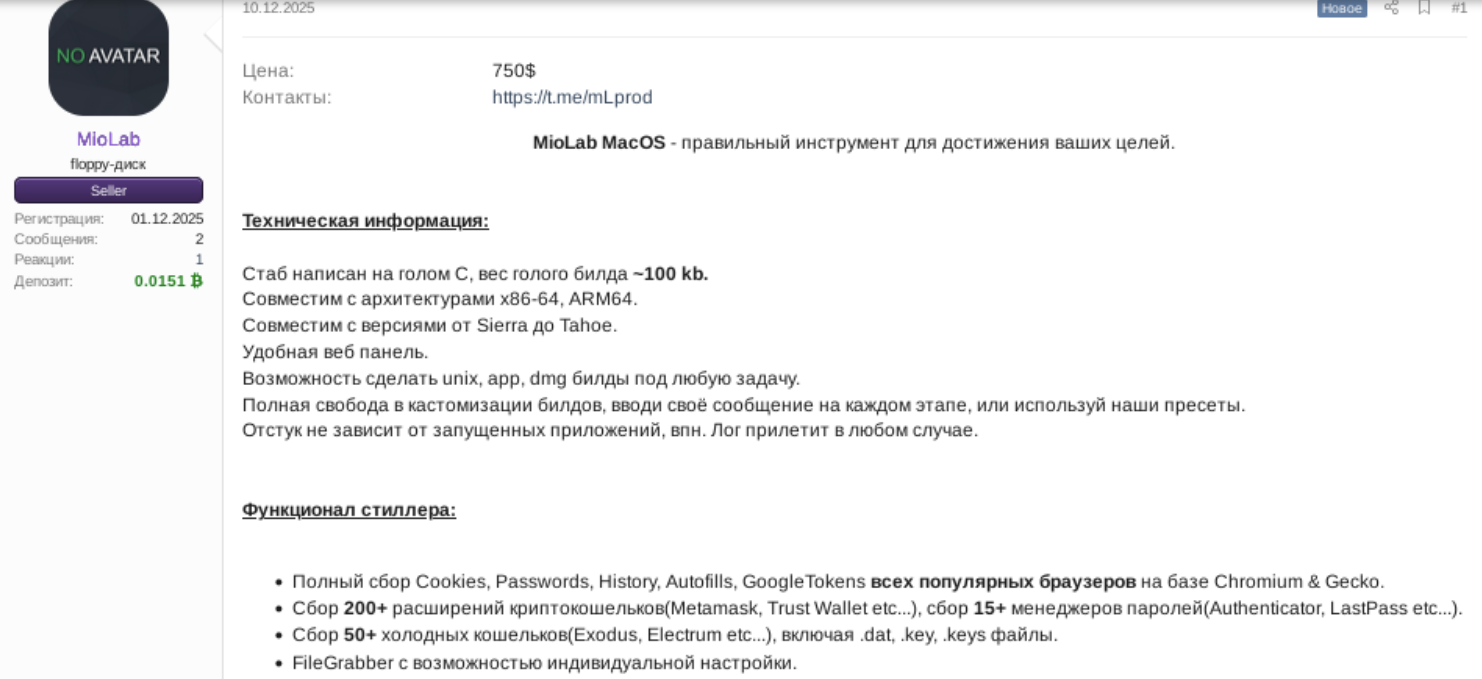 MioLab – MacOS stealer | 24/7 SUPPORT | WEB PANEL | INDIVIDUAL CONFIGURATION | % WORK | VOUCH COPY