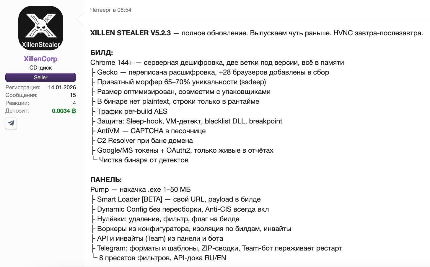 XILLEN STEALER V5.2.3 — full update. We’re releasing it a little early. HVNC tomorrow or the day after tomorrow.